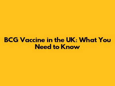 BCG Vaccine In The UK: What You Need To Know