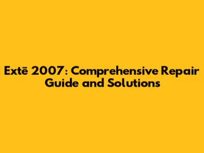 Extē 2007: Comprehensive Repair Guide And Solutions