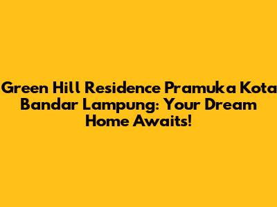 Hey guys! Are you dreaming of owning a beautiful home in a strategic location in Bandar Lampung? Look no further! Let's dive deep into everything you need to know about Green Hill Residence Pramuka Kota Bandar Lampung, the residential gem that's capturing the hearts of many. This article will guide you through every aspect of Green Hill Residence, from its prime location and stunning designs to its top-notch facilities and investment potential. Get ready to discover why this could be your perfect place to call home!