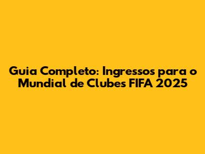 Guia Completo: Ingressos Para O Mundial De Clubes FIFA 2025