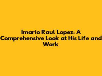 Imario Raul Lopez: Biography, Career, And Impact