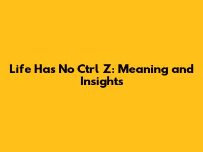 Life Has No Ctrl Z: Meaning And Insights