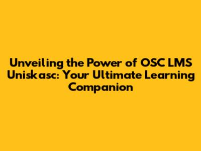 Unveiling the Power of OSC LMS Uniskasc: Your Ultimate Learning Companion