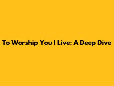 To Worship You I Live: A Deep Dive