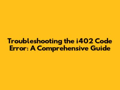 Troubleshooting The I402 Code Error: A Comprehensive Guide