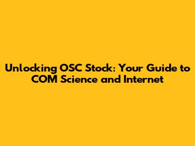 Unlocking OSC Stock: Your Guide To COM Science And Internet