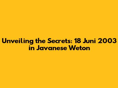 Unveiling The Secrets: 18 Juni 2003 In Javanese Weton