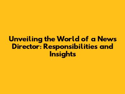 Unveiling The World Of A News Director: Responsibilities And Insights